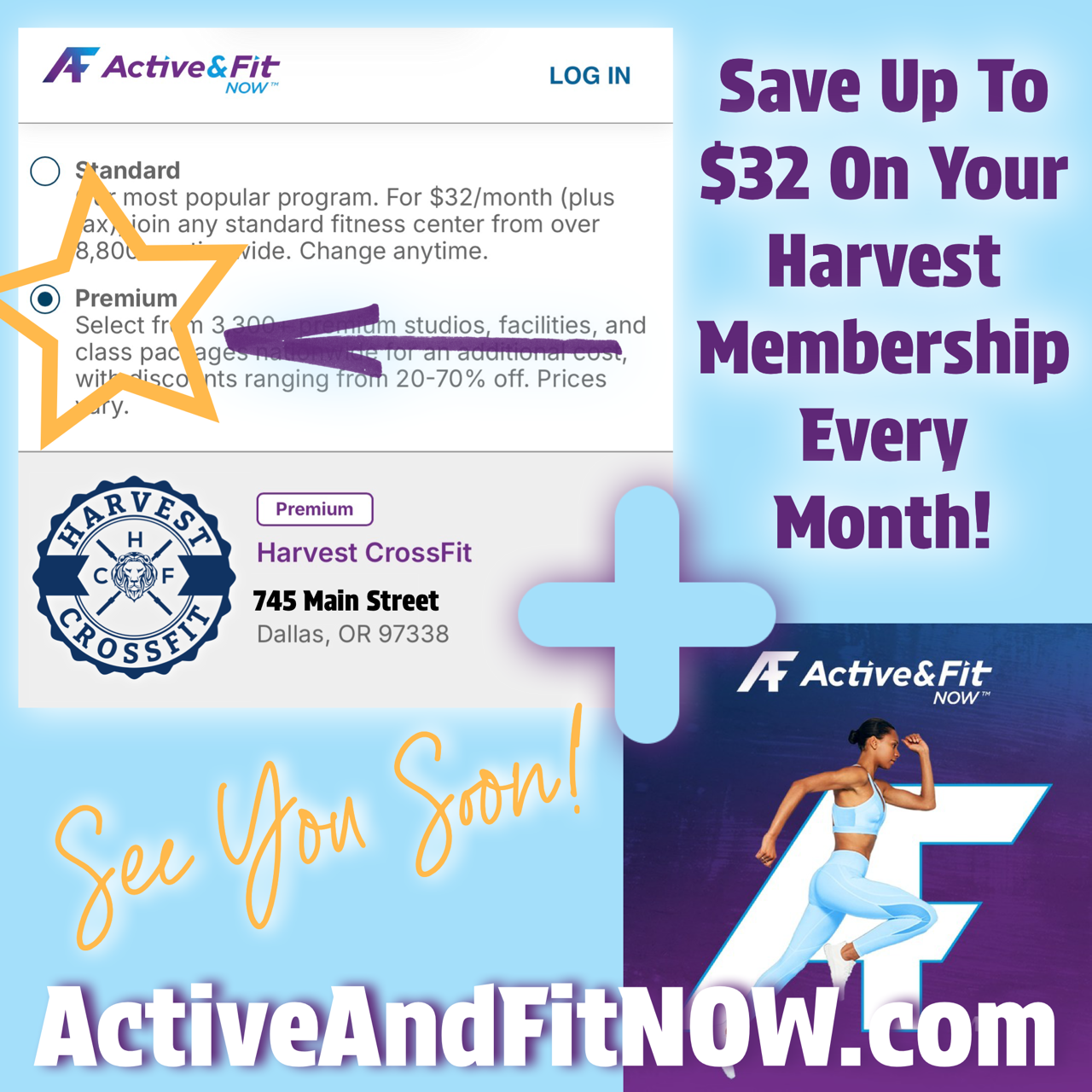 Register and Login to ActiveAndFitDirect.com to choose Harvest CrossFit as your Premier facility. You will be directed to the corresponding program that suits your eligibility. Once Harvest is chosen as your Premier facility, you will begin paying Active&Fit for your membership. They will pay for up to $120 of your membership at Harvest. Remaining balance will be paid directly to HCF.