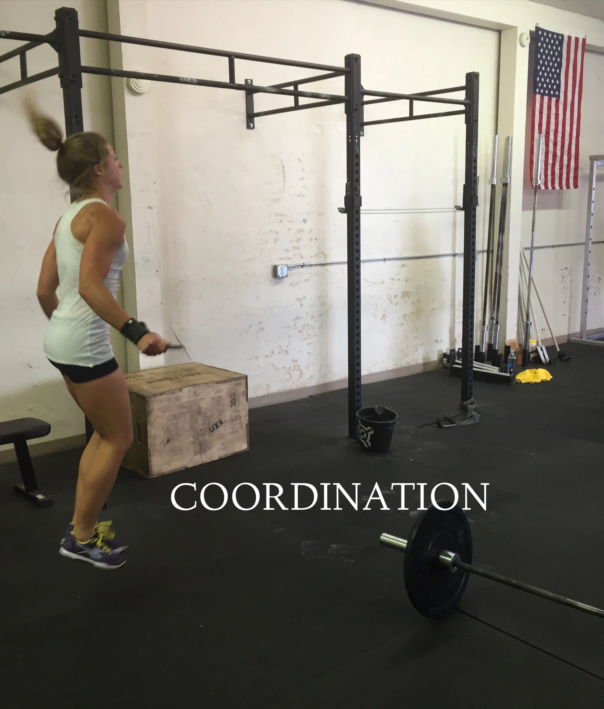 Coordination is the ability to combine several distinct movement patterns into a singular distinct movement. Many movements in CrossFit require some amount of coordination. And some much more than others. You've all heard me say this several times in the gym and I hope you're experiencing it as you learn all sorts of new movements//These movements require a lot of coordination, but they also develop a lot of coordination.